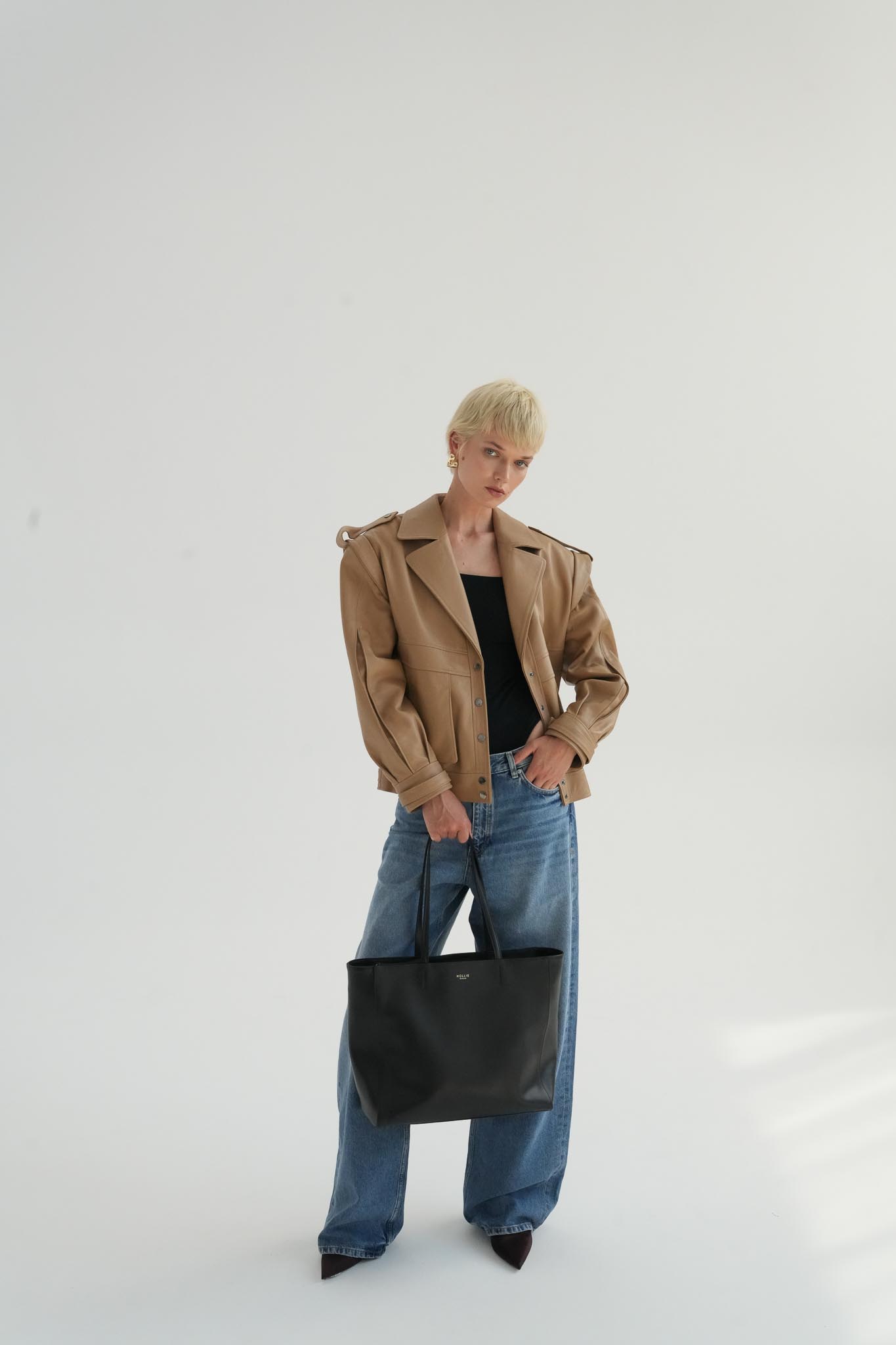 ZOE is a large, zipped bag made of Italian, smooth leather. Inside there are three pockets including one zipped. For better organization inside you will find a strap for keys and detachable leather pouch. Bag is finished with a water-resistant lining. In front gold logo and pendant with small metal ball with logo. This bag fits A4 format and laptop.
