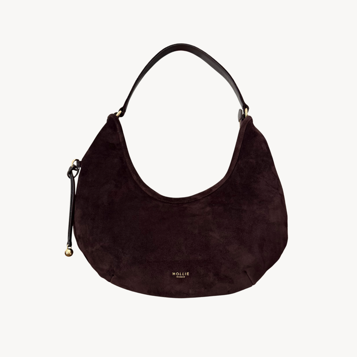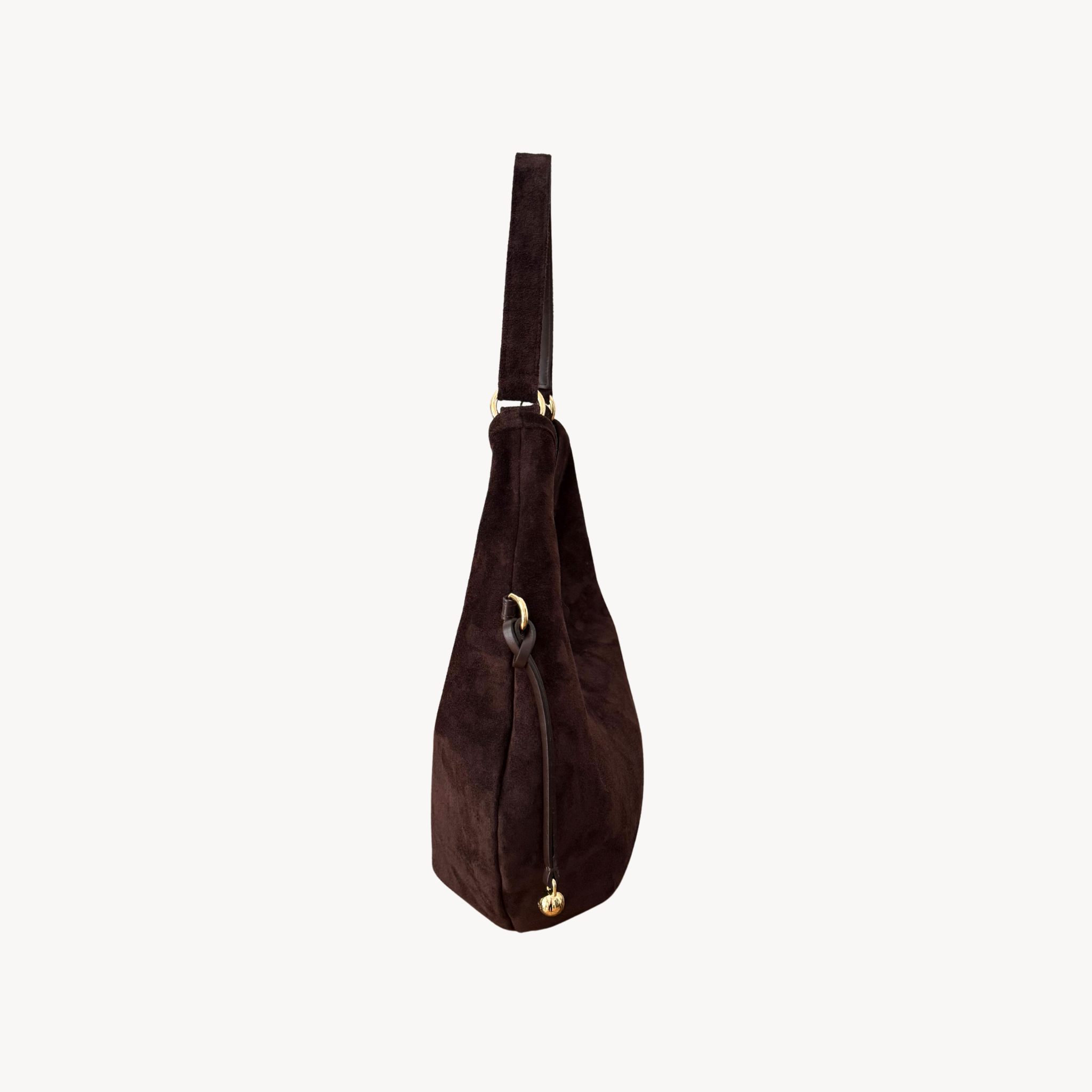 100% włoska skóra zamszowa impregnowana. Złote okucia. Torebka szyta w Polsce.