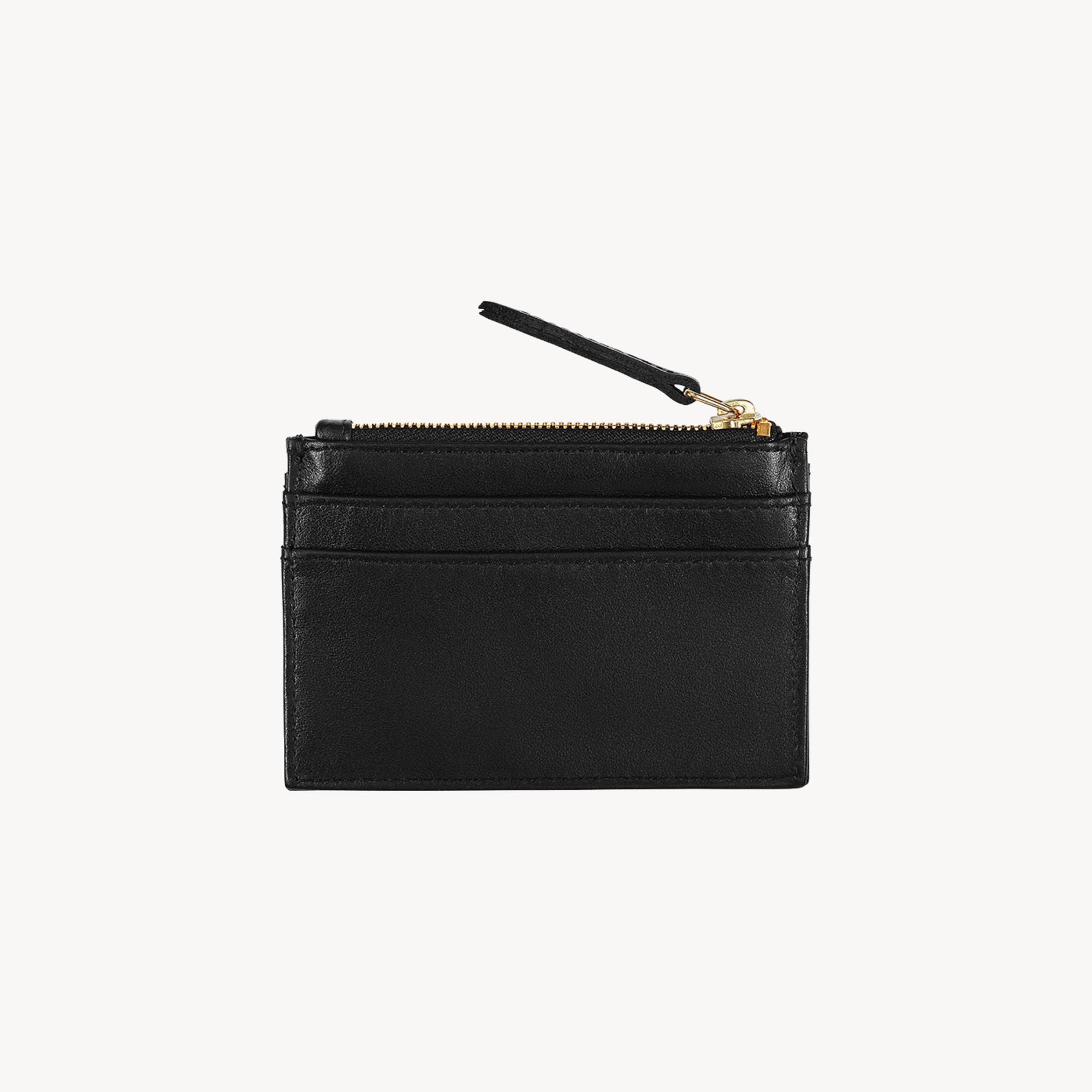 MINI ETUI to poręczne etui na karty wykonane z gładkiej, włoskiej skóry. Etui posiada 3 przegródki oraz jedną kieszonkę na zamek, dzięki czemu idealnie sprawdzi się również jako mini portfelik. Środek wykończony czarną podszewką. Etui pomieści kilkanaście kart. Z przodu wybite złote logo.